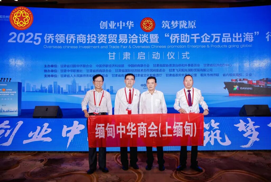7 月 7 日,中国侨联“侨助千企万品出海”行动甘肃启动仪式在甘肃省兰州市隆重举行,应甘肃省侨联主席袁斌才的邀请,缅甸中华商会(上缅甸)值班会长刘永伦带队出席了此次活动。与刘永伦会长一同参与活动的还有缅甸中华商会(上缅甸)副会长沈世安以及缅甸中华商会(上缅甸)北京代表处主任杨英才。