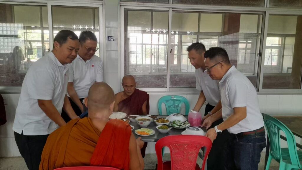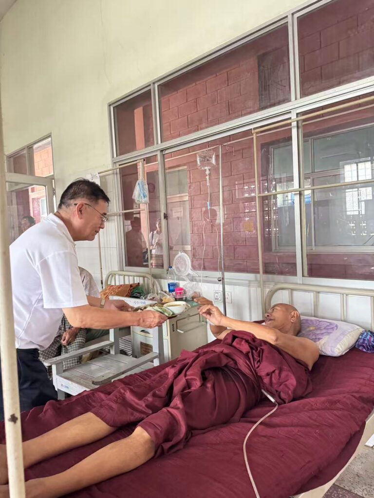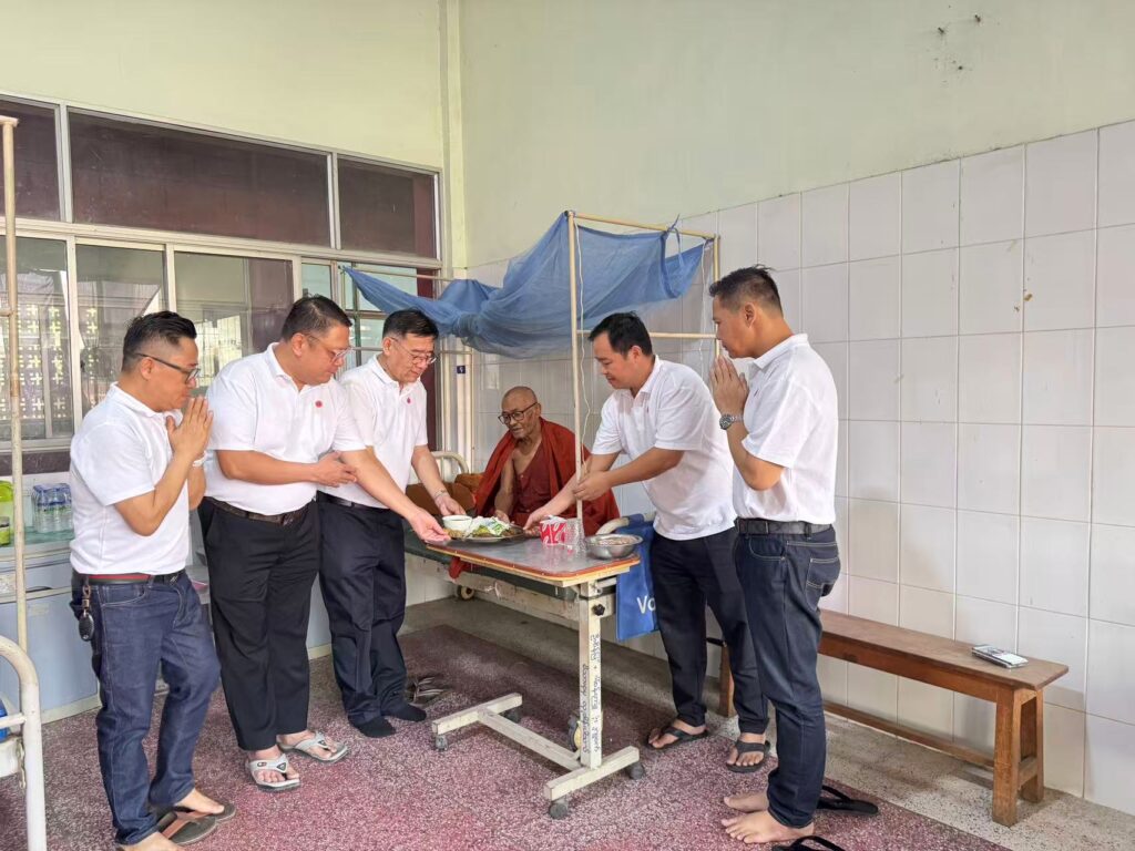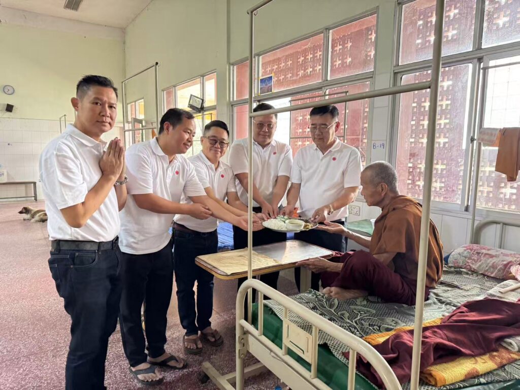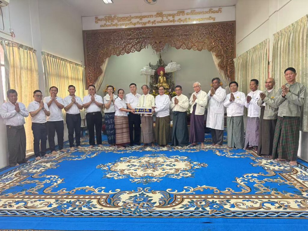 3月20日,缅甸中华商会(上缅甸)执行会长刘永伦先生率领商会会员代表一行,前往曼德勒泽维达纳僧侣医院捐赠善款,用于医院震后建筑维修及日常运营,以实际行动践行侨社责任,尊重缅甸佛教文化,深化中缅胞波情谊。